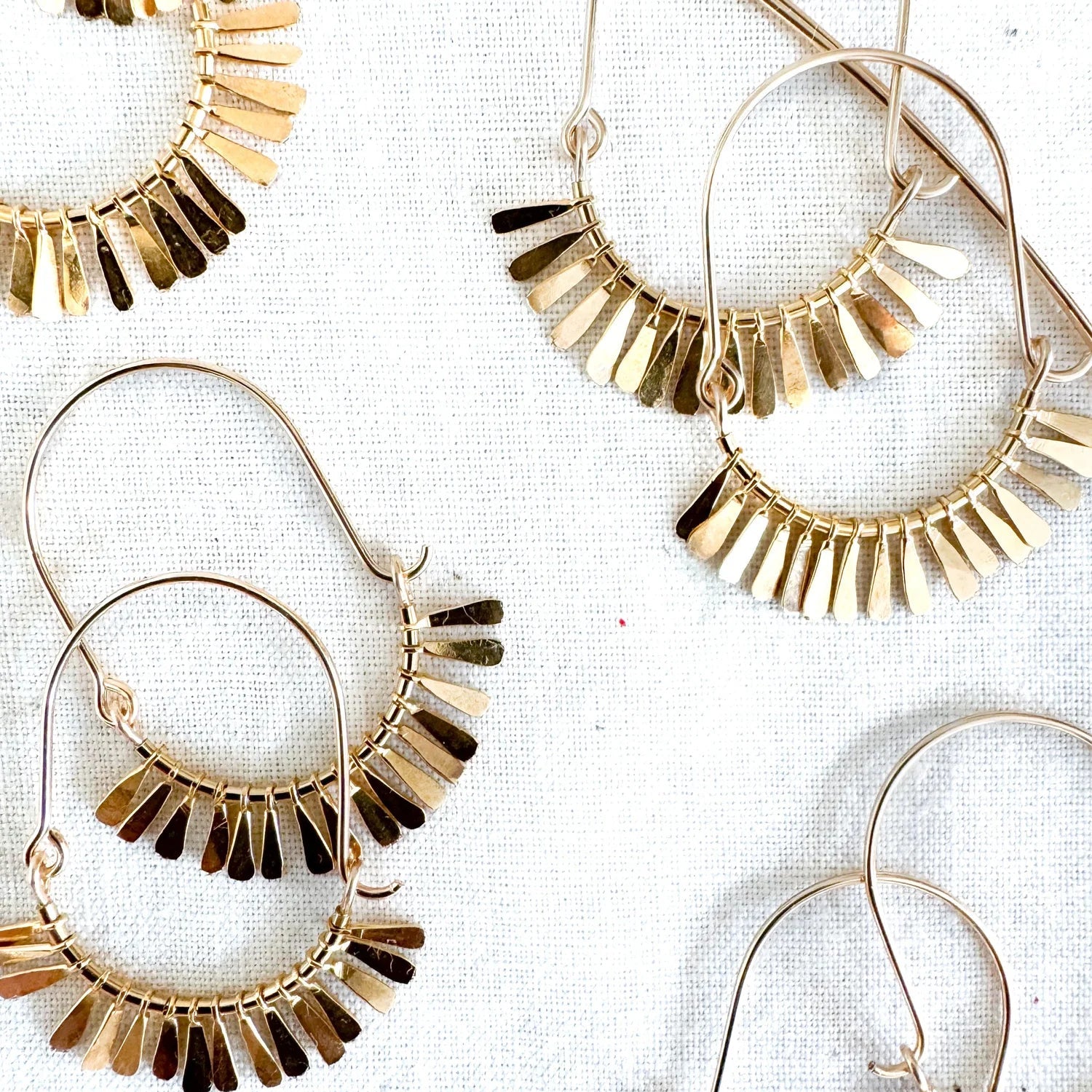 14k gold filled wire and fringe Hoops. The oblong shape offers a modern twist on a classic style, while the fringe adds just enough movement to keep things interesting.