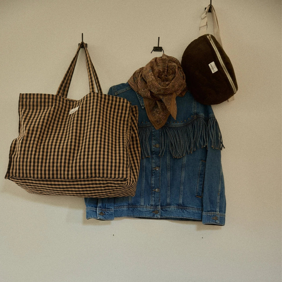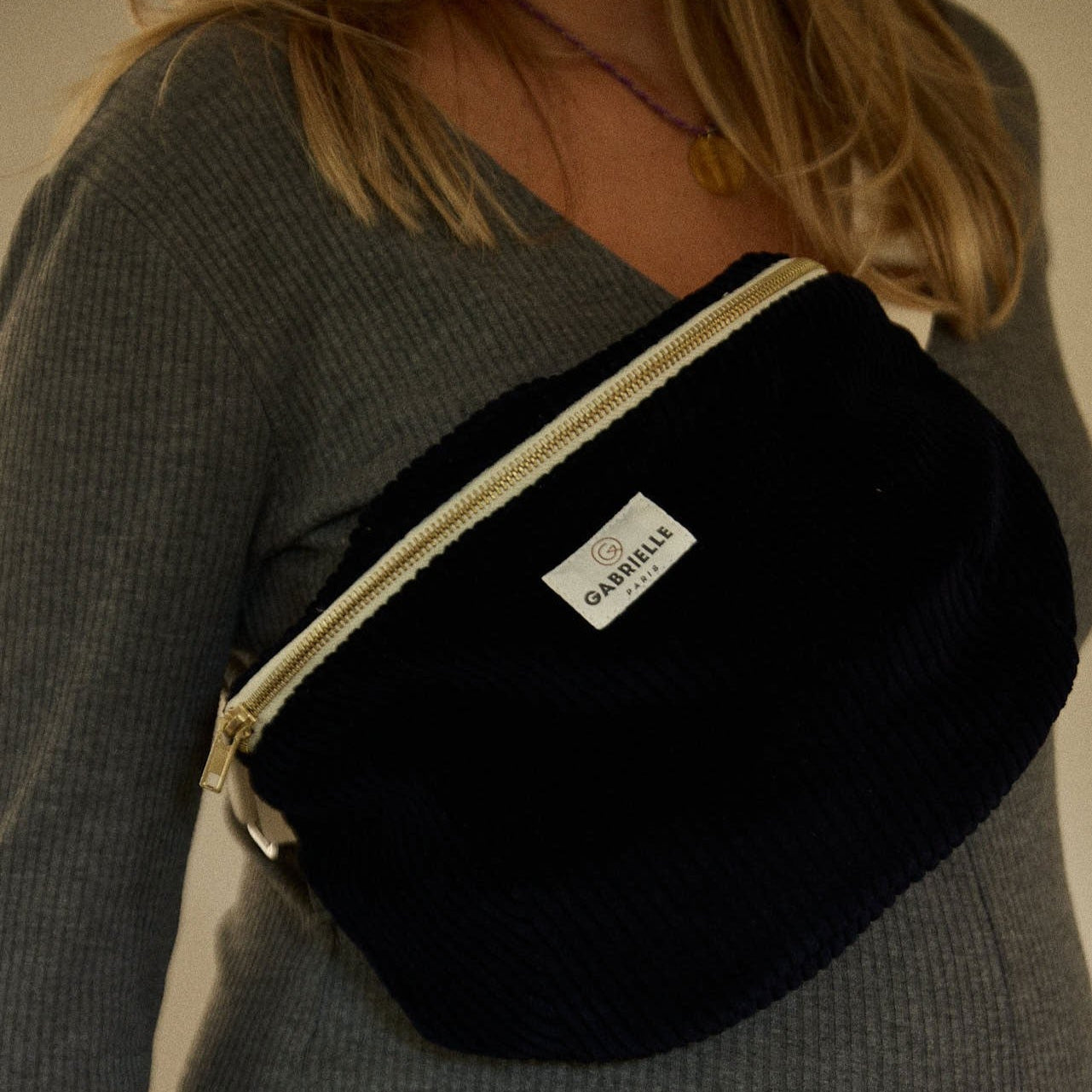 The Corduroy Bleu Marine cotton waist bag is made from 100% cotton corduroy, with a soft camel cotton lining, it measures 30 x 15 x 8 cm. The adjustable strap extends from 66 to 110 cm for a comfortable fit. Inside, you'll find a handy pocket, and the bag closes securely with a zipper. Easy to care for, simply machine wash it at 30°C. OEKO-TEX certified and free from AZO class dyes that are known to be harmful to the skin and the environment.