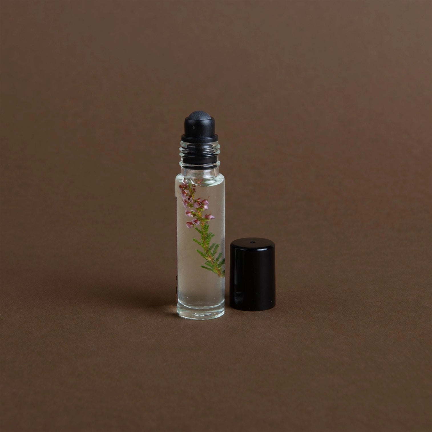The Heather Fragrance Oil is a gentle, alcohol-free alternative to traditional perfume - made to glide on softly and stay close to the skin. Each 10 ml glass bottle is hand-filled and decorated with heather flowers, turning everyday scenting into a quiet, nature-touched ritual. Munio blend organic fractionated coconut oil with nutrient-rich Inca omega oil for a fast-absorbing, non-greasy base that’s kind to skin. Natural heather fragrance brings a floral scent with soft honey notes—perfect for pulse points, travel, and quick touch-ups. Lovingly handmade in the Munio studio with organic and natural, sustainably sourced ingredients