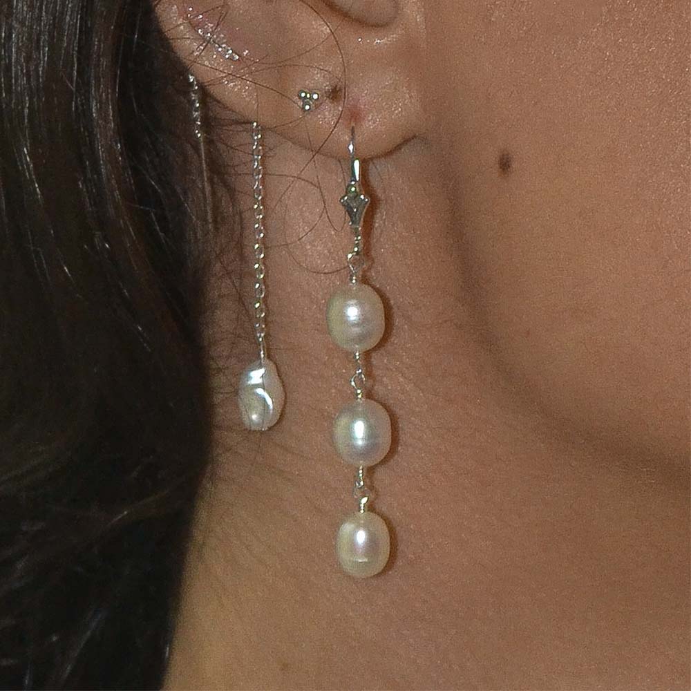 Fine and delicate, these earrings flow from your earlobe with an baguette stone on one end and a fine line on the other. They catch the light in a beautiful way as you move. Length can be adjusted depending how far the chain is pulled through the ear. Threader earrings come with wire ends to make it easy to thread the chain through any pierced hole of your ear, making these earrings fun to wear and play around with (from one pierced hole to another) or just through a single piercing