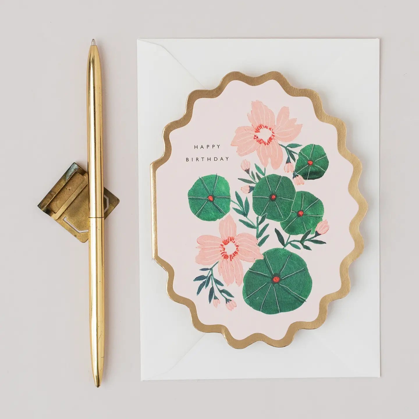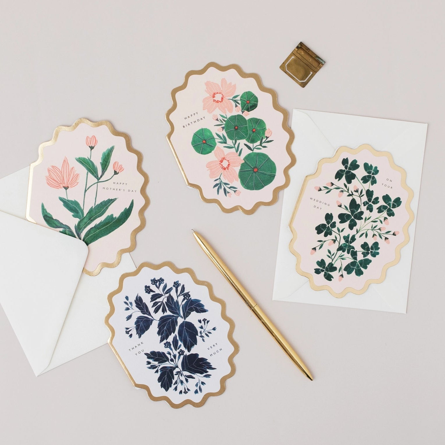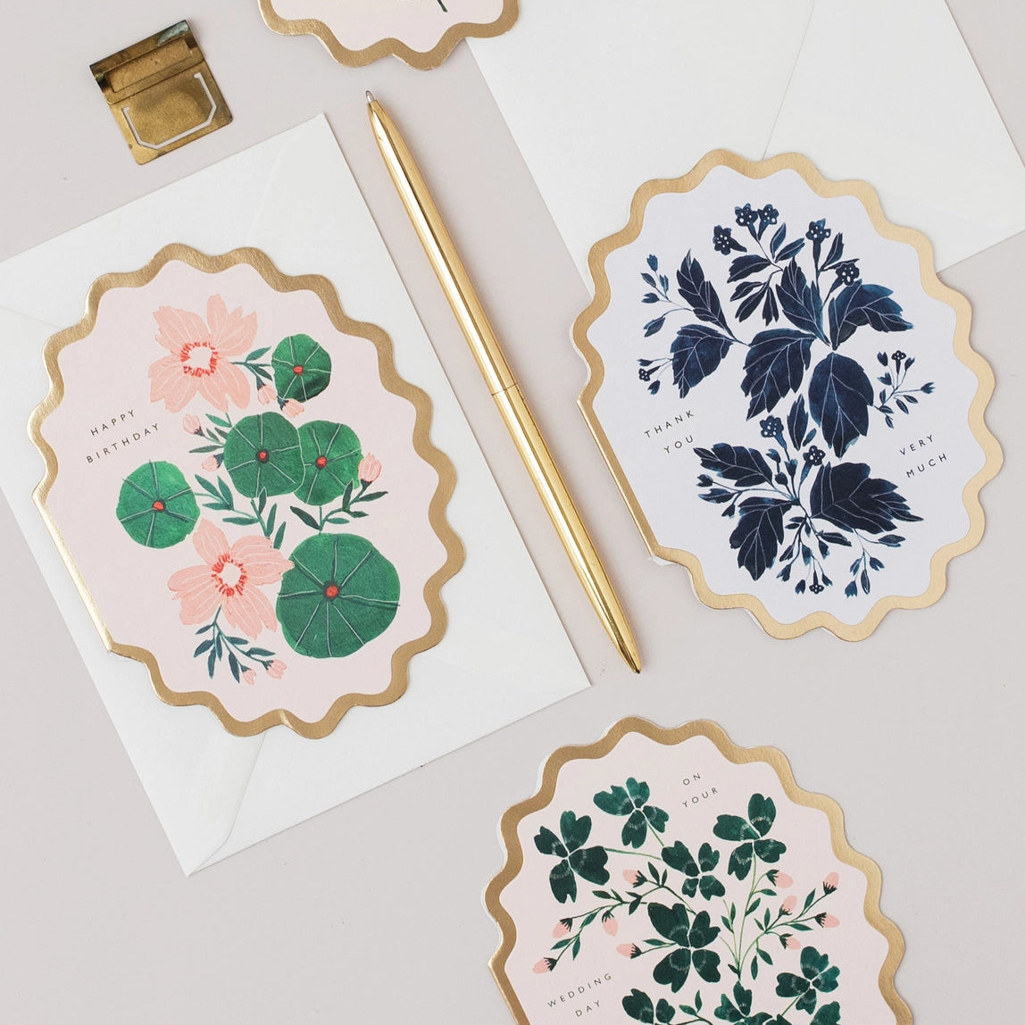 Die cut, delicately foiled greeting card for that extra special occasion. Packed in a biodegradable potato starch cello. A6 in size - Printed on 300gsm card - blank inside for your own message. Each item is lovingly finished, packed and sent from Katie's studio by the sea.