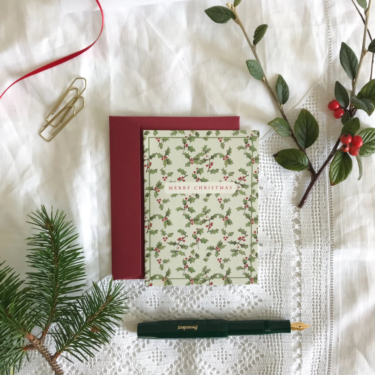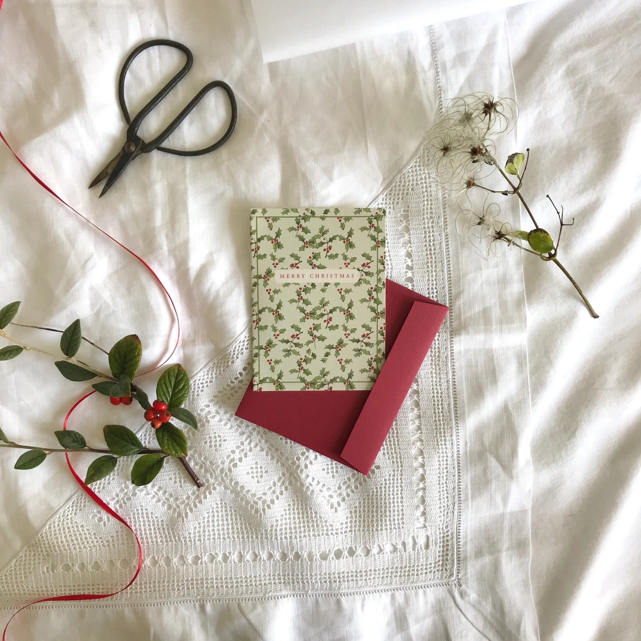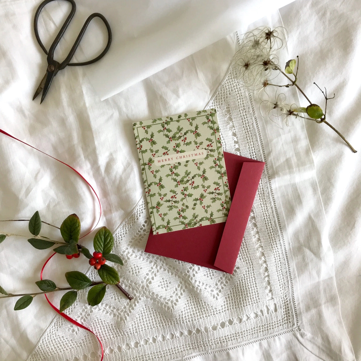 ABOUT : This Christmas card features a lovely texture thanks to being printed on smooth pressed cream card in the UK. It also comes with a luxury envelope in a contrasting colour. The design combines beautiful elements of natural botanicals with the traditional festive theme.
