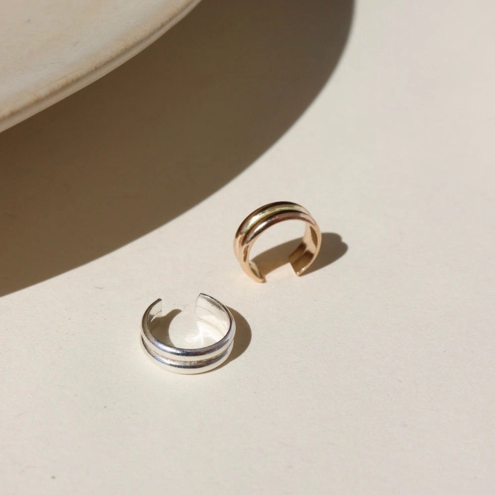 This simple and classic ear cuff is a piercing-free piece of jewellery. 14k gold filled or sterling silver, and can be lightly squeezed to fit your ear. Fits mid way through the ear, almost in replacement (or in addition to!) of a conch piercing.