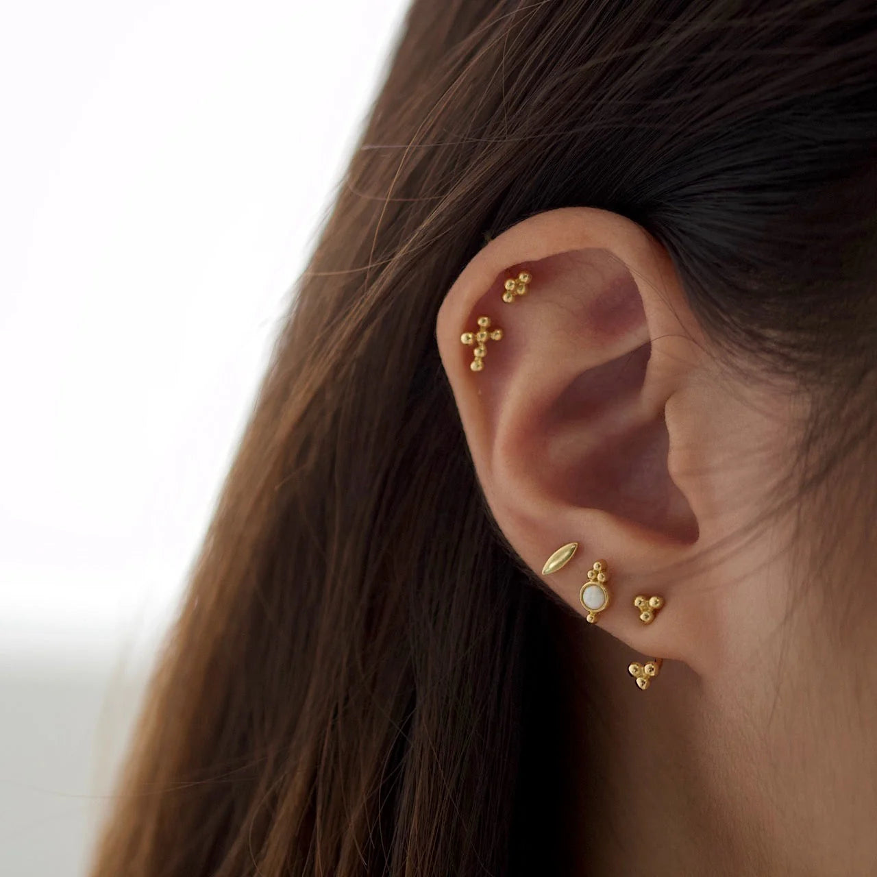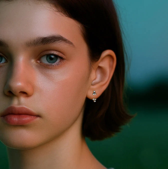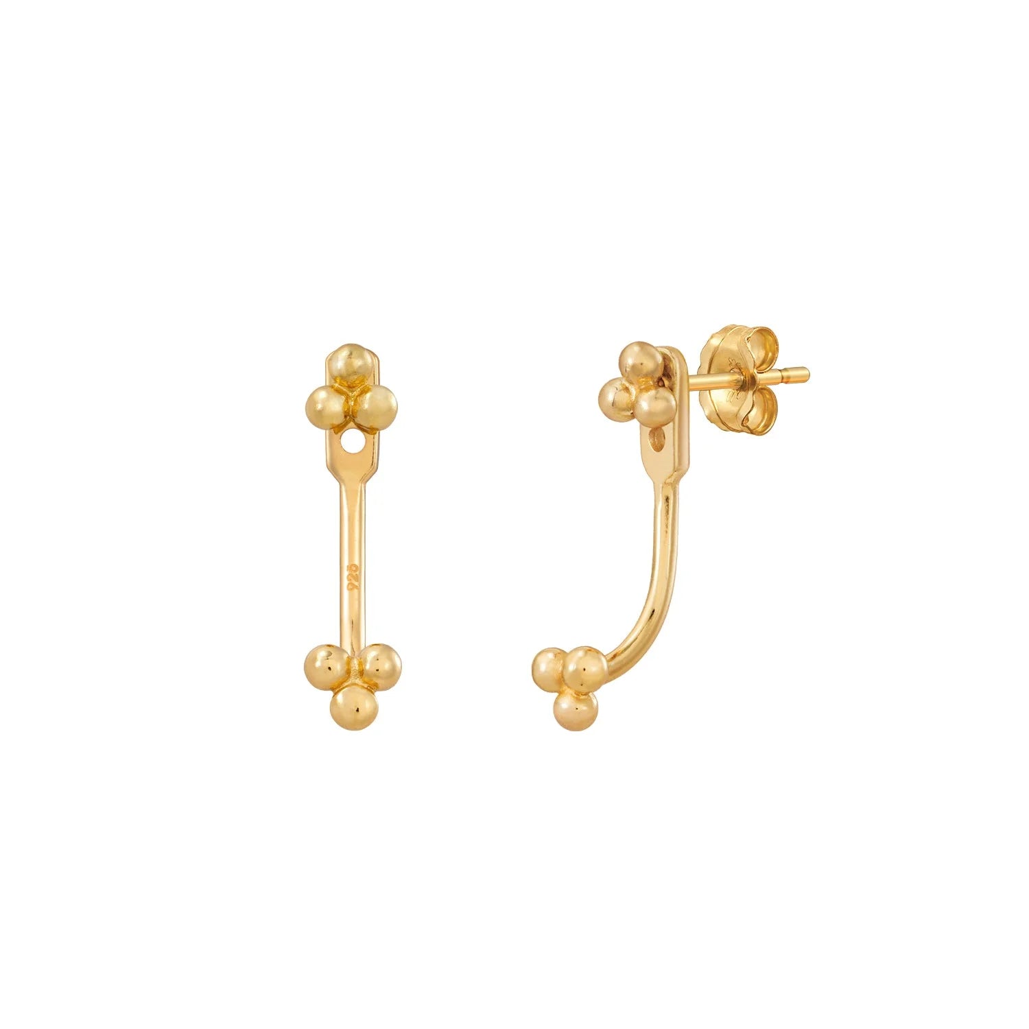 Trinity ball ear jacket. This 2 in 1 earrings, ball stud can be worn with or without the ball ear jacket. Designed to peek out from below the lobe, floating.